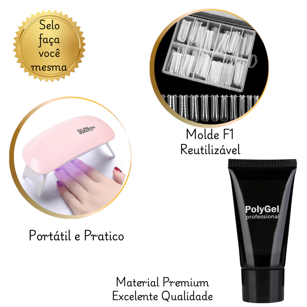 Kit Alongamento Poligel Polygel + Molde F1 + Lixa + Mini Cabine De Unha + Pincel 02 em 1